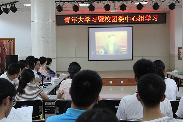 6 月 29 上午,校团委在青年之家开展 “青年大学习” 校团委中心组学习活动,集中学习党中央致词和团十八大报告。校团委、各学院团委负责人、校学生会委员和各学院学会会主席 30 余人参加学习。