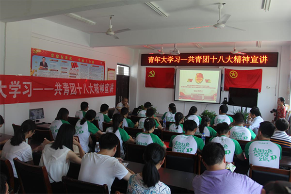 药学院实践队来到胜利村村部会议室,观看微视频《姐妹》,倾听了大学生村官刘参和王帅创业帮扶、扎根农村、服务基层,尽自己的微薄力量为扶贫工作献力的感人故事。青年大学习活动中,团县委邀请当地团十八大代表、新时代青年传习员黄清田现场传达团十八大精神,并讲述自己大学毕业放弃高薪工作毅然决然返乡创业,为家乡建设做贡献的经历,同学们感动于他们扎根基层、无悔奉献、真心为民的情怀。随后实地观摩美丽乡村丁里镇胜利行政村石碑座中心村,体验改革开放 40 周年新农村的巨大变化,处处花团锦簇、幸福安定,深悟到新时代的青年要紧紧地听党话,跟党走,服务基层,用奉献创造不凡的人生价值,用奋斗绽放灿烂的青春之花。