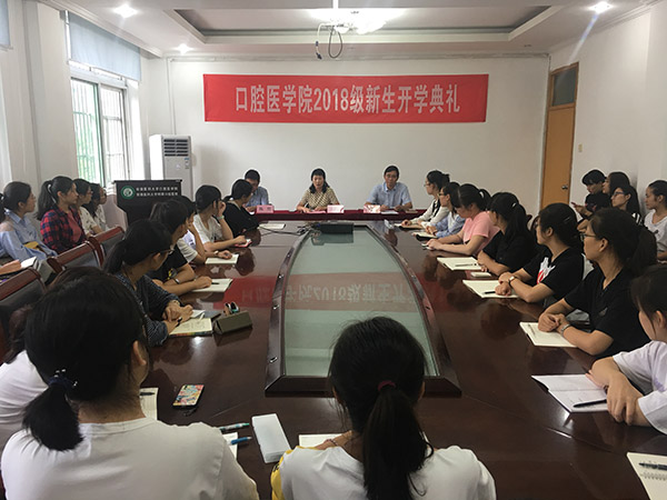 9月13日,口腔医学院2018级新生开学典礼在健行楼五楼会议室举行。院领导、辅导员及全体新生参加此次典礼。典礼由院党委副书记陈然主持。