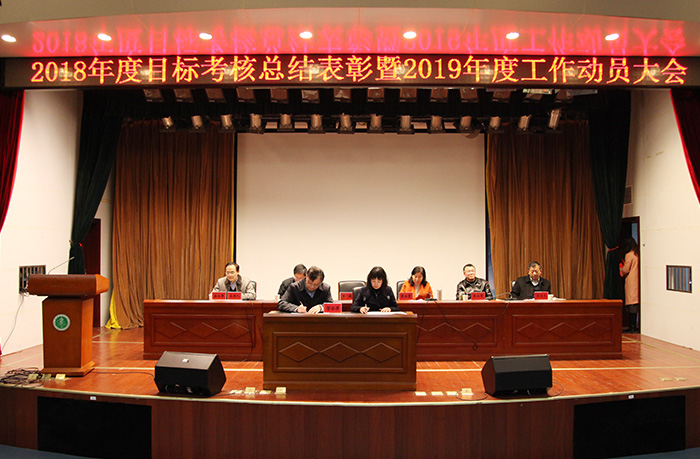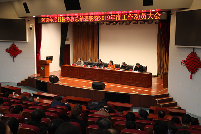 3月6日下午,学校在图书馆第一学术报告厅召开2018年度目标考核总结表彰暨2019年度工作动员大会,校领导李俊、曹云霞、刘群英、常业军、肖圣龙出席会议,副校长余永强主持会议。