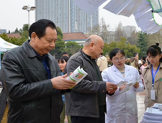 3月24日上午,我校医院联合公共卫生学院微暖志愿服务队在校文化广场举办以“开展终结结核行动,共建共享健康中国”为主题的防治结核宣传活动。校医院直属党支部书记郭亚现场参观活动。