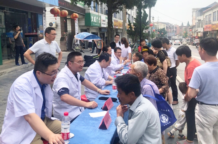专家一行奔赴炯炀镇中心卫生院,向其赠送了我校第一附属医院提供的价值1500元药品,随后就投入到紧张的义诊活动中。此次参与义诊的专家来自附属口腔医院及一附院五官科、儿科、骨科、呼吸科、放射及麻醉科等科室,他们耐心细致地聆听患者主诉,认真仔细地进行诊断,并针对性地解决问题。对于专家们不辞辛苦、冒着酷暑义诊的奉献精神,以及在家门口就能享受到省城医院的体贴服务,当地百姓纷纷赞许。