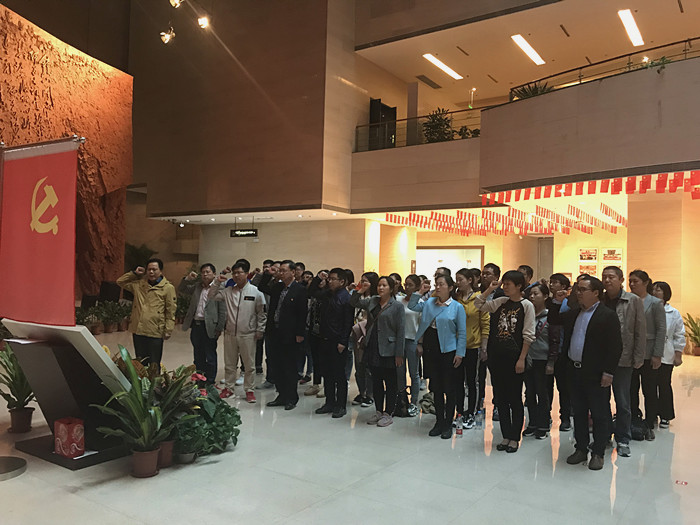 该院党委书记余谋武带领党员师生依序参观了战前形势、战役准备、突破江防、战役胜利、英烈业绩等展厅,并为党员同志介绍了那段波澜壮阔的革命历程,让大家真切感受党的战斗力、军民的齐心协力和人民解放军不怕牺牲的英雄气概。在纪念馆的一楼大厅,面对鲜红的党旗,该院党委副书记吴热生带领全体党员重温入党誓词,由此表达对党的无限忠诚和崇高敬意。每个党员神情肃穆,高举右拳,一字一句重温入党誓词。