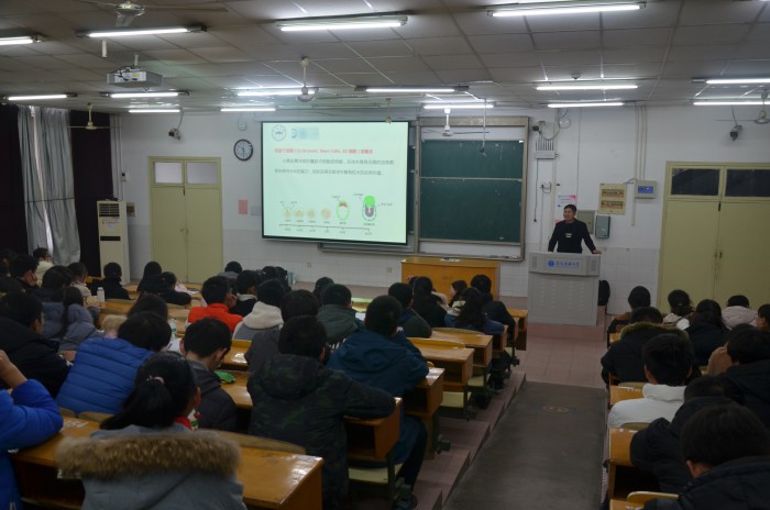 叶守东师从国际知名干细胞专家应其龙教授,一直从事相关领域研究并取得了丰富的研究成果。报告会上,他结合学术研究前沿和个人研究经历,为学生们介绍了干细胞的研究现状和应用前景,深入浅出地将专业研究转换成一个个生动的小故事,用丰富的内容带领学生充分感受专业研究的魅力。同时,他分享了在复旦大学和美国南加州大学学习、研究的经历,耐心回答现场学生问题,并激励学弟学妹们珍惜在校的学习时光,注重养成良好学习习惯,培养钻研精神,坚定专业理想和方向,争取在专业道路上远走越远、越走越宽。叶守东在科研上执着的精神和激励的话语,让在场学生倍受鼓舞,倍感温暖。
