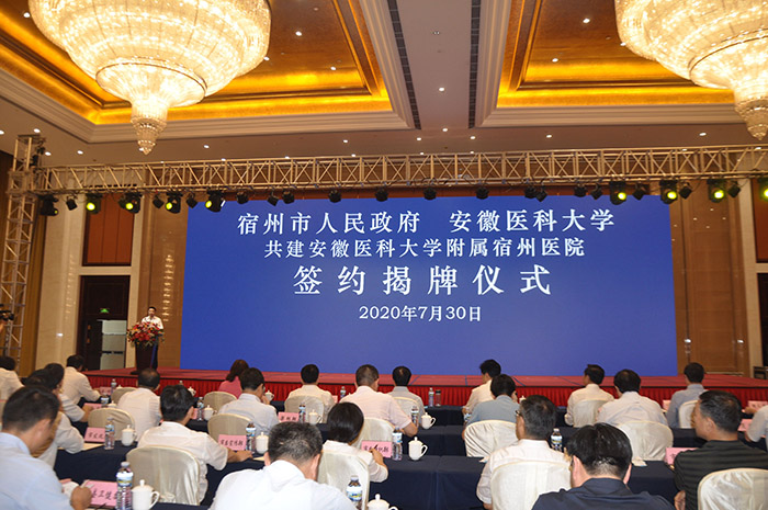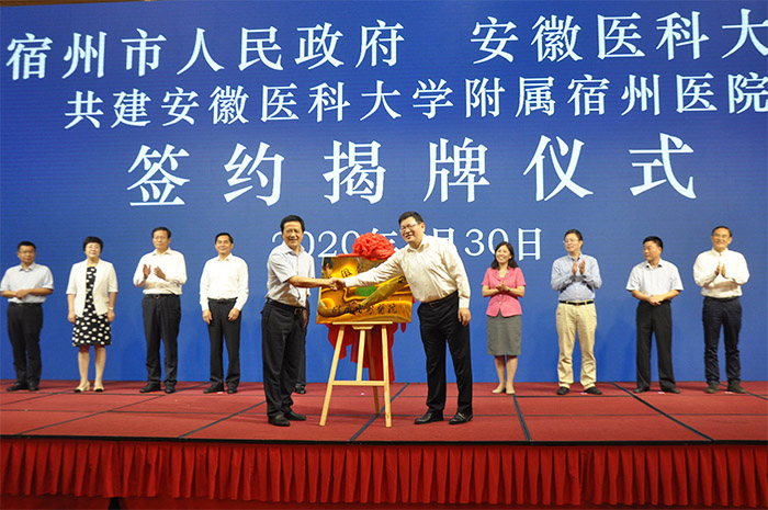 曹云霞简要介绍了学校的校史校情。她表示,学校作为安徽省医药高等教育的发源地,省卫生健康体系的创造者和领跑者,积极推进校地合作,投身经济社会建设主战场,服务国家健康战略和五大发展美好安徽建设。此次与宿州市签订共建附属宿州医院协议是贯彻落实中央及省委省政府深化医教协同,推动医学教育改革发展的重要举措,是进一步提高宿州乃至皖北区域医疗服务质量水平,提升人民健康服务满意度的必然选择。