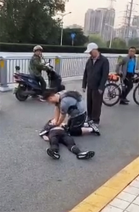 当日清晨,葛魏巍像往常一样早起,穿戴上护膝,背上双肩包,一身运动装扮,准备晨跑去医院上班。6点20左右,当他跑步途经合肥市潜山路桥时,看见人行道上一名30岁左右的年轻男子突然晕厥向前扑倒在地。见此情景,身为急诊科医生的他一个健步冲上前,迅速来到这名男子身边,一边呼唤一边观察倒地者的情况。