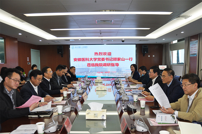 11月6日下午,校党委书记顾家山、副校长余永强一行赴滁州市第一人民医院调研座谈,进一步推动校地合作,推进直属附院网格化建设,科学擘画安医系医疗集团“十四五”规划蓝图。座谈会前,滁州市委书记张祥安,市委副书记、市长许继伟会见了顾家山一行。滁州市委常委、市委秘书长杨甫祥出席座谈会。