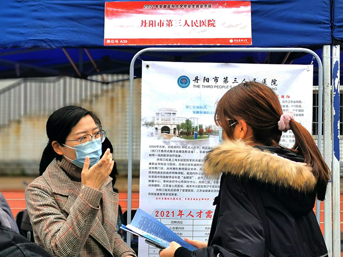 学校认真贯彻习近平总书记关于高校毕业生就业工作的指示批示精神、认真落实“六稳”和“六保”工作,认真落实2021年全国两会中提出国家就业优先政策,把毕业生就业工作作为学校工作的重中之重,坚持全员抓、全年抓、全力抓的就业育人理念。此次招聘会共有来自全国的113家单位参加,80%以上为市县级医疗卫生事业单位,提供就业岗位近万个。现场情况火爆,淮北市等多家卫生健康委员会组团参会,南京鼓楼医院等众多医院和医药企业招聘宣讲、专场招聘同时进行。据统计,当天同时举办了12个用人单位专场招聘会。