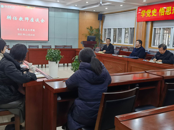 12月24日上午,马克思主义学院召开新转任思政课教师座谈会,校党委副书记刘群英出席并讲话。