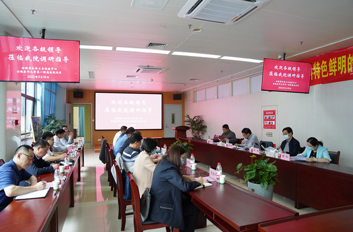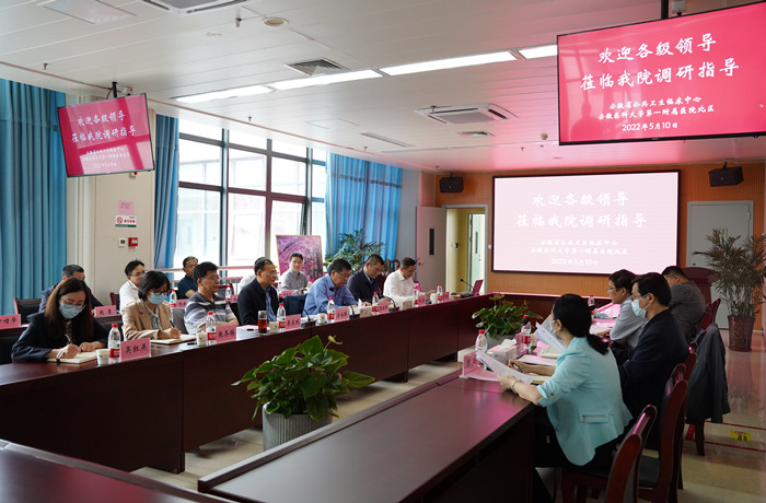 省卫健委疾病预防控制处处长王海、规划发展与信息化处副处长陈鹏、医政医管处四级调研员陈玲参加调研。第一附属医院常务副院长李家斌、一附院北区领导班子及学校有关职能部门负责人参加座谈会。(安徽省公共卫生临床中心)