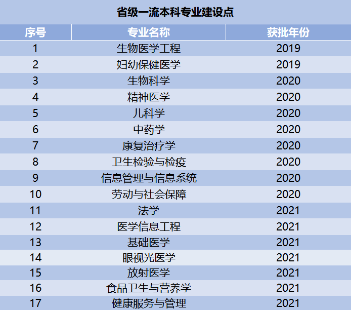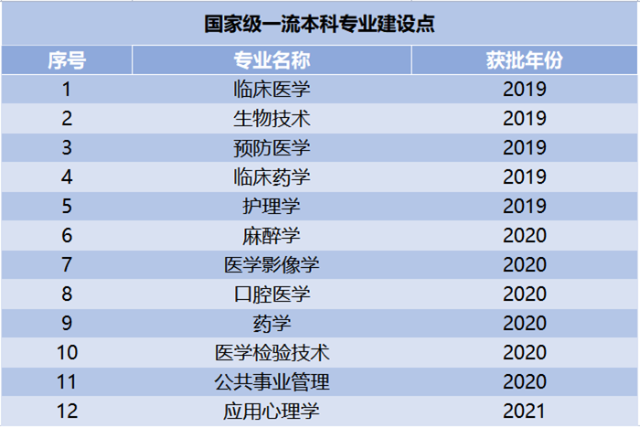 近日,教育部公布2021年度国家级和省级一流本科专业建设点名单,我校应用心理学专业入选国家级一流本科专业建设点;基础医学、眼视光医学、放射医学、法学、医学信息工程、食品卫生与营养学、健康服务与管理等7个专业获批安徽省一流本科专业建设点。截至目前,学校共有国家级一流本科专业建设点12个,省级一流本科专业建设点17个。除近三年新增本科专业,我校国家级、省级一流本科专业实现全覆盖。