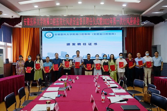 8月12日,附属口腔医院召开行风建设监督员聘任仪式暨行风建设座谈会。来自教育卫生、新闻媒体、律师事务所等不同行业的15名行风监督员受邀出席会议。该院党委书记王润玲出席并讲话,院长何家才作医院基本情况和医教研建设成效介绍,副院长王海林主持。
