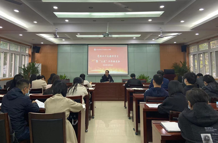 10月18日上午,马克思主义学院召开党的二十大精神学习暨“三进”工作推进会,该院党委副书记、院长柳泽民主持会议并讲话,院党委委员、副院长储著源参加会议。