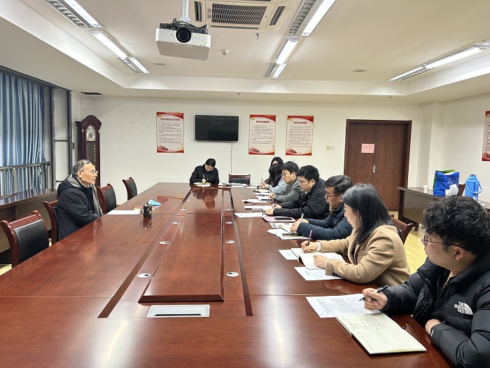科技产业处处长王华作工作汇报,处室全体人员参加会议。(科技产业处 程凡)