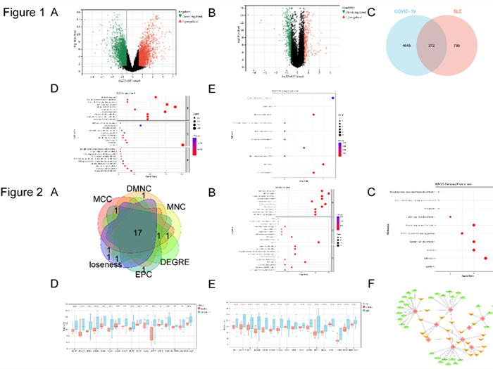 该研究通过分析严重COVID-19患者与系统性红斑狼疮患者的血液转录组数据,筛选出了272个共同的差异表达基因,进一步研究鉴定出了17个关键的差异表达基因,并建立了转录因子-miRNA-关键基因调控网络。这些基因大多受干扰素诱导,并参与调控先天免疫反应。该研究揭示了严重COVID-19与系统性红斑狼疮之间的潜在机制和关键的生物标志物,表明干扰素相关基因可能是严重COVID-19与系统性红斑狼疮共患病的关键调控因子,这为研究COVID-19和SLE提供了新的见解,有助于疾病的精确诊断和治疗。