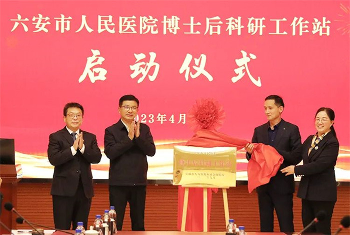 近日,六安市卫健系统首家省级博士后科研工作站在附属六安医院(六安市人民医院)启用,该院两名博士通过评审答辩成功进站。六安市人民政府、市人社局、市卫健委领导及该院领导班子等出席启用揭牌仪式。
