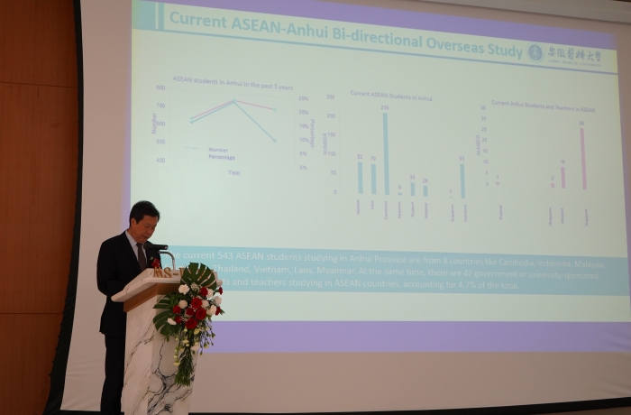梁朝朝在题为《以高质量国际合作塑造高等教育的未来》主旨演讲中,就kaiyun平台登录入口手机版在kaiyun体育手机版登陆官网官网、科研创新、对外交流、医疗服务等工作中取得的成绩作了介绍。他分析了中国与东盟国家高等教育交流合作的现状及尚存的问题,并以中国-东盟双向留学及安徽省、安kaiyun体育彩金国际教育和合作交流的情况为例,提出了推进学历学位互认、结合自身优势提升培养质量、加大语言培养力度、拓展招生渠道、加强数字化教育建设等重要建议。