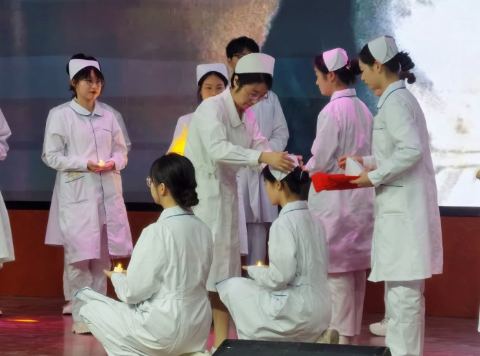 授帽宣誓仪式圣洁庄重,是每位护生踏上护理道路的成人礼。该院赵梅、章新琼两位教授为护生戴上圣洁的燕尾帽,也标志着“燃烧自己,照亮别人”的精神将传递到新一批护生手上。