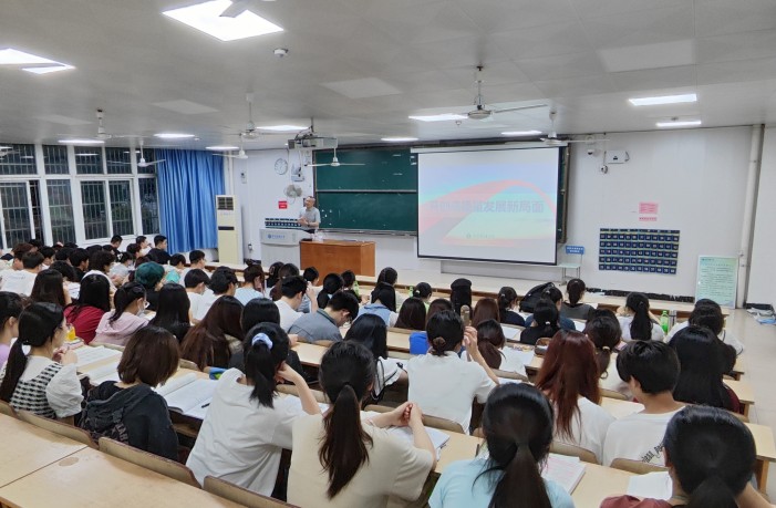 5月29日晚,校党委常委、副校长余永强在锡祺楼14102教室,为本科生讲授题为《开创高质量发展新局面》的“形势与政策”课。