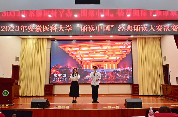 第一临床医学院的金灵鲲和卫生管理学院的张行敏搭档参赛。他们配合默契,凭借对作品《读中国》的出色诠释,获得一等奖。金灵鲲在赛后说道:“感谢这次大赛,让我们不仅在备赛过程中学习了更多的中华经典,坚定了文化自信,也在比赛舞台上弘扬了中华优秀传统文化。以后的医学生涯里,我会在学习好专业知识的同时增强人文素养,给病患更加温暖的人文关怀。”