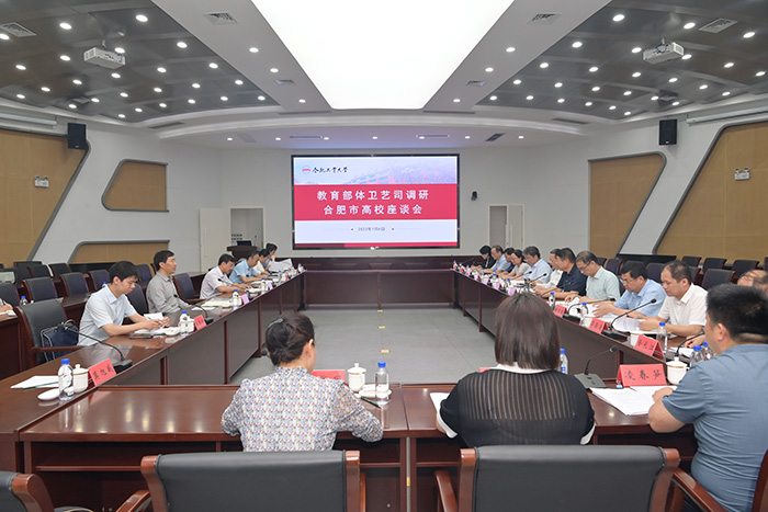 7月6日下午,教育部体卫艺司副司长、一级巡视员刘培俊一行在肥召开调研座谈会,就在肥高校新冠疫情防控典型经验做法和健康学校工作展开专题调研。省委教育工委委员、省教育厅副厅长解平主持会议,校党委副书记谢瑞瑾参加座谈会并作交流发言。
