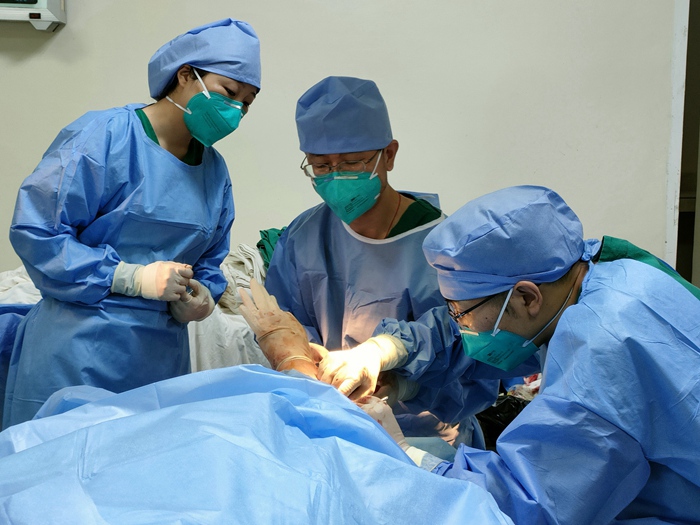 医疗队工作所在地朱巴教学医院条件简陋,医疗设备和药品严重匮乏。办法总比困难多,丁振带领着队员们将废弃的老胃镜室重新改成了简易的门诊手术室。在南苏丹工作的一年里,他和队员们共接待门诊患者11868人次,开展手术94例,抢救危重患者355例,为南苏丹人民接种新冠疫苗702人次。2022年2月22日,丁振带领全体医疗队员前往伦拜克开展为期五天的义诊活动,克服种种困难,共接诊患者2632人,其中手术2人次,小针刀治疗26人次,针灸治疗42人次,骶管注射及神经封闭治疗44人次。义诊活动在当地产生极大反响,为中南两国友谊、为中国医疗队在南苏丹人民中的良好形象都添上浓墨重彩的一笔。