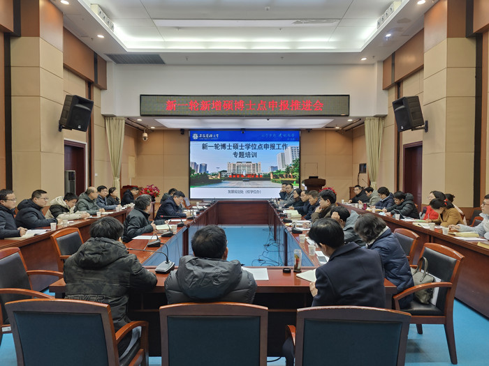 1月22日下午,学校召开新一轮博士硕士学位点申报工作推进会,传达了我省新一轮学位授权审核工作推进会会议精神。校党委书记顾家山主持会议,副校长吕雄文、学术副校长张智出席会议。