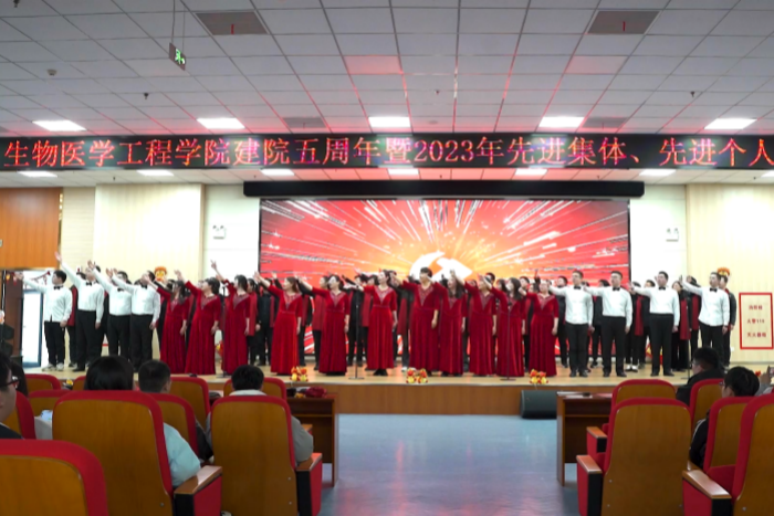 颁奖典礼上,该院播放了精心制作的建院五周年宣传片《风雨兼程五载路 弦歌不辍奏华章》。学院教师原创诗歌朗诵《五年医工路 风雨砥砺行》,展现学院快速发展取得的成就,以及对未来发展的憧憬。全体教职工代表合唱歌曲《唱支山歌给党听》,唱出了全院上下团结一心的合音,抒发了对党和国家的无限深情。