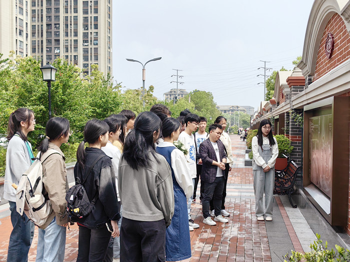抵达延乔路,“延乔路短,集贤路长,他们没有汇合,但都通往了繁华大道”的标语映入眼帘,深深吸引着同学们。延乔路是为了纪念革命烈士陈延年、陈乔年而命名,全长仅约1.2公里,但他们舍生忘死、视死如归的爱党爱国革命精神却永垂不朽,铸就了今天的繁华盛世和幸福生活。带队老师向同学们介绍了延乔路街区的改造主题和设计理念,并带领大家先后参观了延乔路纪念广场、“穿越之门”、觉醒雕塑、纪念墙等,通过浮雕、壁画回顾了陈延年、陈乔年两兄弟英勇的革命事迹,感受革命先辈的英雄气概。