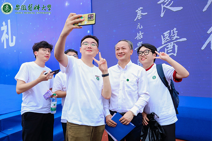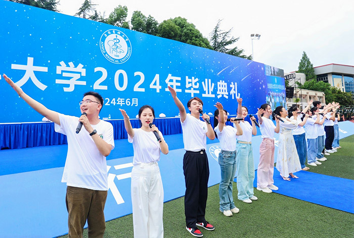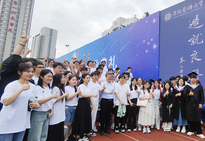 “同学们,请转头看看你们周围的同学、朋友,他们都是你们医学之路上坚实的伙伴,而在安医一起奋斗的日子会是你们宝贵的回忆。”夏强表示,很庆幸在安医遇上了相守一生的爱人和一群志同道合的朋友,他也希望学弟学妹们在毕业后仍能携手并进,于成功之际互享喜悦,于迷茫之际互相勉励,于困难之际守望相助。