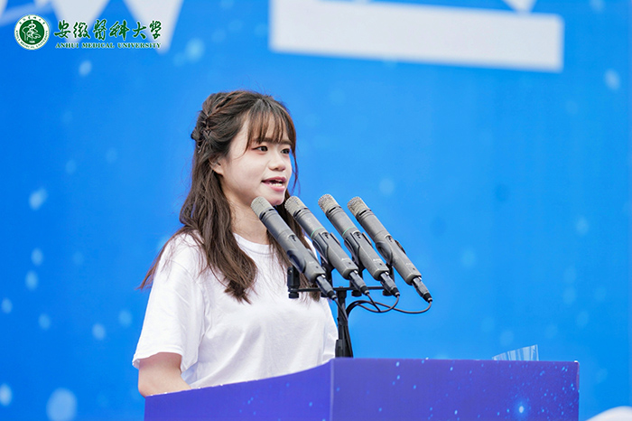 学校“十佳基础教师”荣誉称号获得者、基础医学院范一菲作为教师代表发言,鼓励毕业生们坚持锻炼、坚持理想,保持对医学的热爱和执着,用强健的身体、坚定的信念迎接工作和生活的种种挑战。来自药学院的缪钰、第一临床医学院(第一附属医院)的周鲁平、国际教育学院的吴欣玲,分别作为本科生、研究生、来华留学生代表发言。