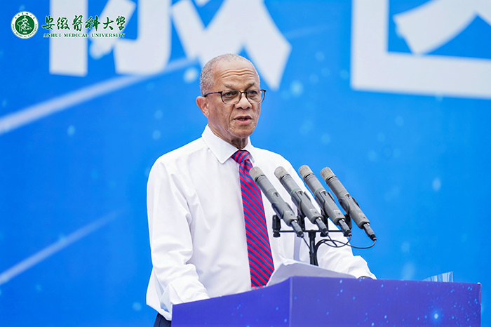 “记得42年前,一个16岁的懵懂少年,从梅山路校门口踏进安医,开启了医学人生之路……安医5年的大学时光给我留下了无数美好的回忆,安医附院6年的工作给我打下了坚实的医学基础。”致辞中,夏强院士回忆了在安医求学生活的点滴记忆,分享了第一台主刀手术时的难忘经历,并向母校的关心和培养表示了衷心感谢。
