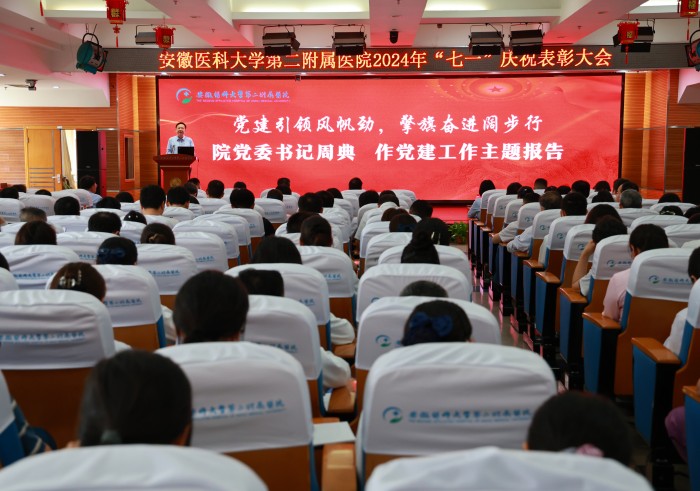 周典代表医院党委向受到表彰的先进集体和优秀个人致以热烈的祝贺,向辛勤奋战在医院各个岗位上的共产党员致以节日的问候。他表示,面对日趋激烈的医疗市场竞争,全院上下要坚持以党的建设为引领,紧扣国家政策导向,聚焦医院“十四五”发展规划目标任务、三期工程建设和安徽省国际医疗医院筹建推动等重点任务,凝心聚力、踔厉奋发,以更高质量的党的建设,不断强化内部治理、推动科研创新、提升医疗服务,以饱满的精神推动医院各项事业高质量发展跃上新台阶。