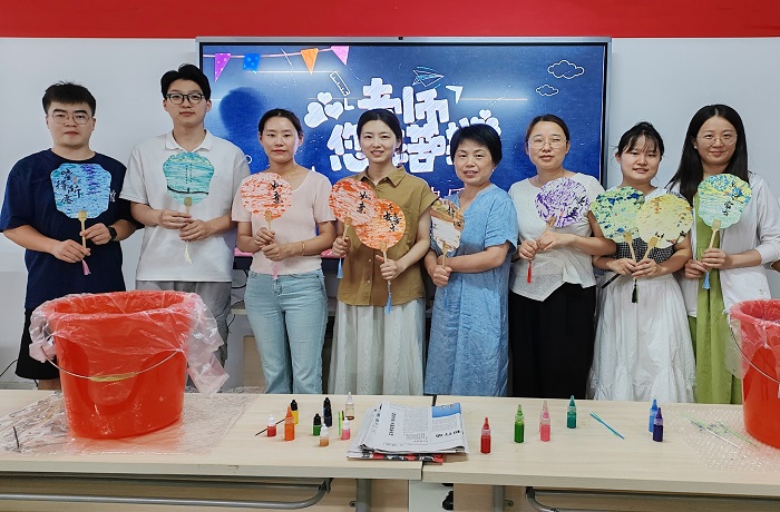 笔墨寄语真情,桃李致谢师恩。为进一步弘扬“尊师重教”良好风尚,院领导在教师节前夕走访慰问优秀教师代表、资深教授代表等,送上鲜花和节日祝福,感谢他们为学院发展付出的努力和所做的贡献,并希望广大优秀教师持续发挥示范引领作用,争做大先生,做学生为学、为事、为人的示范。学院还举办主题活动,让师生共同体验非遗漆扇制作。老师们沉浸在创作中,静心感受漆扇制作的乐趣与雅致。同学们将亲手制作的精美漆扇赠予老师,以扇传情,表达对老师的感恩之心,在领略丰富多彩的中华传统文化同时,弘扬中华民族尊师重教的传统美德。