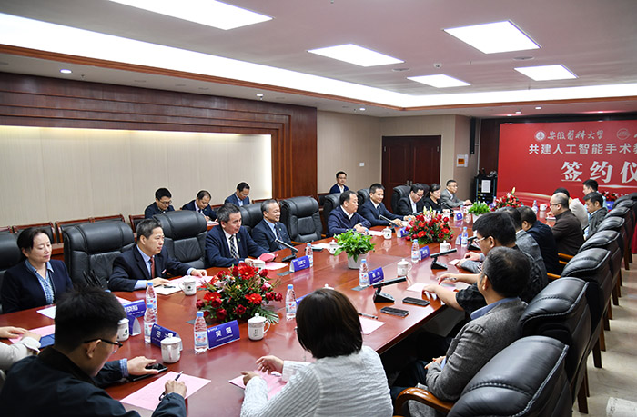 王琦介绍了kaiyun平台登录入口手机版的办学历史及发展现状。他在致辞中指出,我国正处于全面实施健康中国战略、实施教育强国和推动医教协同的重大历史发展机遇期,人工智能赋能医学教育是未来医学教育创新发展的趋势之一。此次共建人工智能手术教育培训基地顺应医学教育潮流,是贯彻落实“推进教育科技人才体制机制一体改革”、服务支撑教育强国建设、健康中国建设的具体行动,也是整合校企资源优势、拓展校企合作空间、推动医学教育高质量发展的必由之路,具有重大的意义和广阔的前景,学校将全力支持培训基地的建设与发展。