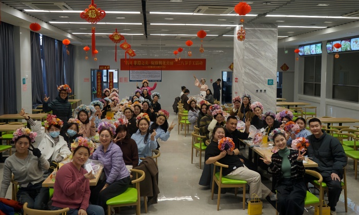 非遗手作绽芳华,传统文化浸润匠心。医院工会为女职工量身打造“指尖非遗·绒花簪春”手工活动。医院副处级组织员吴卫在活动现场向女性职工致以节日的问候,100余名职工热情参与。活动现场,女职工在工作人员的指导下,先将小花固定至发箍上,再将深浅不一的大花依次插空固定,接着将散开的花枝插入后排,最后装饰叶片……在一片欢声笑语中,每位职工都完成了独属自己的最美簪花,戴着各自的作品笑意盈盈。大家一致表示,制作传统发饰不仅缓解了工作压力,更在制作过程中体会到工匠精神的传承意义。