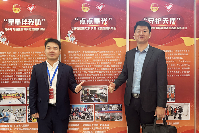 安kaiyun体育彩金一附院团委书记王晓虎和“点点星光”项目负责人孟佳林作为代表上台领奖。活动现场设置交流展示,对获奖项目在内的58个大赛优秀项目进行集中展示和重点推介。据了解,“点点星光”志愿服务项目由我校一附院团委与安徽太阳伞儿童慈善救助中心联合开展,涵盖志愿课程开展、课程讲义编写、志愿者讲师培训等内容,主要面向乡村留守儿童开展性健康知识教育志愿课程,旨在让留守儿童通过学习相关知识,正确面对青春期身体变化、学会防范性侵害。项目自实施以来,先后获得首届安徽省卫生健康系统青年志愿服务项目大赛一等奖(第一名)、第七届中国青年志愿服务项目大赛银奖等奖项。