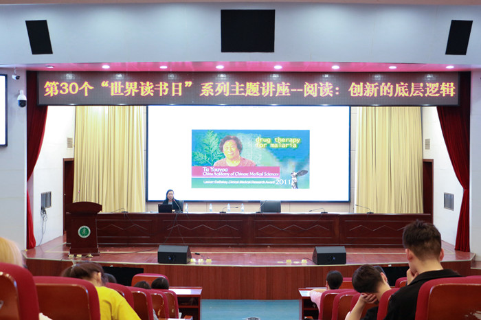 图书档案馆馆长张磊主持讲座,近200名师生参加讲座。(图书档案馆 文/王朔 吴雨静 图/王晶晶)