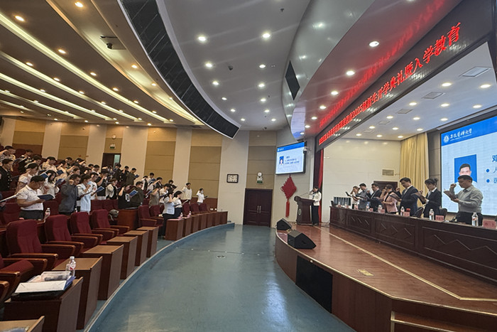 典礼后开展《开学第一课——以心自助,筑梦新程》视频教学,围绕学籍管理、教育教学、学位申请、学业规划等为新生作入学教育专题培训,通过实地参观校史馆、观看视频宣传片、发放校徽纪念章等方式开展校史院情教育,进一步增强新生荣誉感、归属感和使命感。
