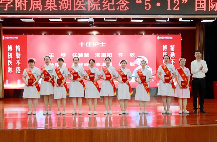 5月9日下午,附属巢湖医院在综合服务楼六楼报告厅举办以“关爱护士队伍,守护人民健康”为主题的纪念“5·12”国际护士节表彰大会。院领导凌春笋、葛丽丹、吴文强、汪卫东、丁振、曹永鹏参加会议。
