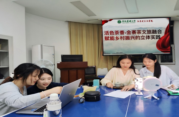 线下答辩环节,两支队伍均聚焦金寨县特色农产品“六安瓜片”,在答辩现场以差异化创意同台竞秀。“活色茶香”团队提出“认养一棵茶树”小程序,巧妙将金寨红色文化底蕴、茶叶生态溯源体系与消费者沉浸式体验深度融合,构建起“文化+产业+消费”的闭环模式,其新颖的思路与扎实的可行性获得专家评委一致认可。“医农健食”团队则另辟蹊径,通过现场复盘完整直播脚本,从选品逻辑、话术设计、互动策略到数据复盘,全方位呈现农产品直播带货的全链路运营方案,清晰展现了营销实践落地的细节与成效。两支队伍的出色表现,生动诠释了我校青年学子扎根乡土、以创新之力赋能乡村振兴的青春担当与实践风采。
