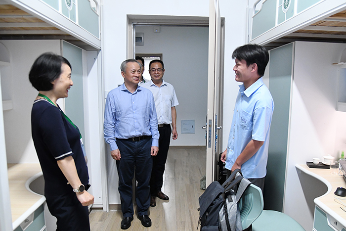 随后,校领导一行还前往学生宿舍,与新生面对面交谈,仔细查看住宿条件及设施配备情况,关切地询问新生是否适应校园环境,并鼓励新生尽快完成角色转变,珍惜学习机会,追求卓越。