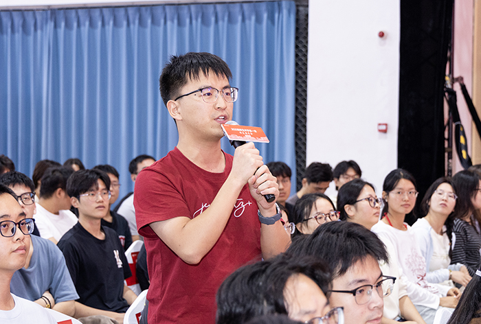 为了进一步拉近与学生的距离,本次报告会特别设置“对话校长,共筑未来”互动环节,同学们积极参与,纷纷举手提问。大家围绕学业发展、校园生活、未来规划等多个话题,与翁建平展开了深入而真诚的交流,现场气氛热烈,笑声与掌声不断。