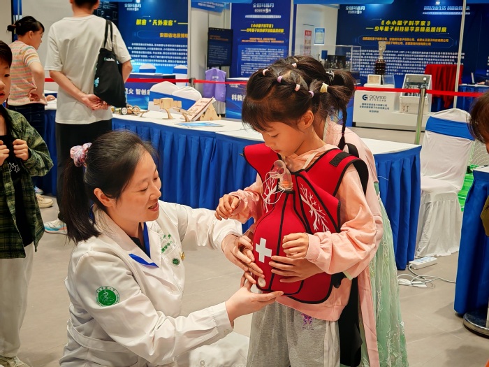 在安徽省科技馆,我校教务处(实验教学中心)人体结构与功能医学科普教育基地以“守护生命‘救’在身边”为主题,举办心肺复苏和海姆利克急救实战课堂。活动以多元融合的科普形式系统展开,集现场讲解、实战演练、互动展示及情景模拟于一体。通过高仿真模拟人和专业教具,全面演示心肺复苏(CPR)、自动体外除颤器(AED)使用以及海姆利克急救法等关键急救技术,真实还原心脏骤停与气道异物梗阻的应急处置流程。现场通过急救知识有奖答题环节增强互动趣味,发放宣传册,广泛涵盖中暑、溺水等常见突发事件的科学应对方法。众多家庭积极参与,在亲子共学中掌握生命救护知识。现场气氛活跃,科学知识深入人心。